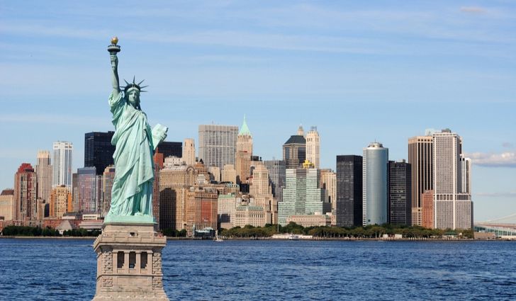 She holds a torch above her head with her right hand and in her left-hand carries, a tabula ansata inscribed in Roman numerals with “JULY IV MDCCLXXVI” (July 4, 1776), the date of the U.S. Declaration of Independence. A broken chain lies at her feet which is an icon of freedom and of the United States, and it was also a welcoming sight to immigrants arriving from abroad. It is one of the most famous tourist attractions in New York City.